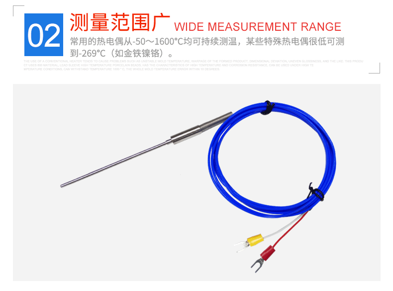 ② 測量范圍廣 常用的熱電偶從-50~1600℃均可持續測溫,某些特殊熱電偶最低可測到-269℃(如金鐵鎳鉻)